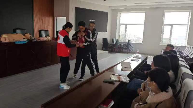 培训考核结束后,县红十字会向参训教师及镇中学生发放了《红十字会救护员手册》、《学生安全预防与自救》、《红十字急救课堂》、《毒漫“话”》等多种宣传资料300余册,提高了公众对红十字会的知晓率和参与度。